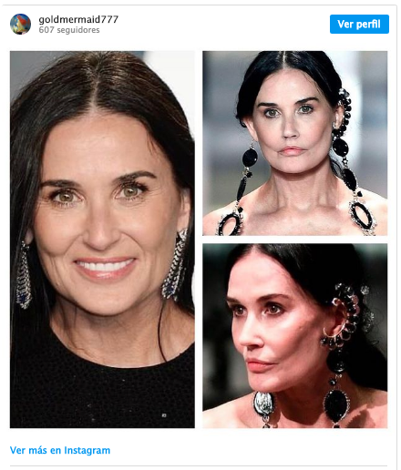 La actriz de 58 años no parecía ser ella, y los rumores comenzaron, tal vez Demi se realizó una cirugía para quitarse las bolsas de Bichat, fue algún tuco que hizo con su rostro o simplemente el maquillaje. Lo que sí en una realidad es que fue dificíl reconocer a Moore durante su paso por la pasarela de Fendi.