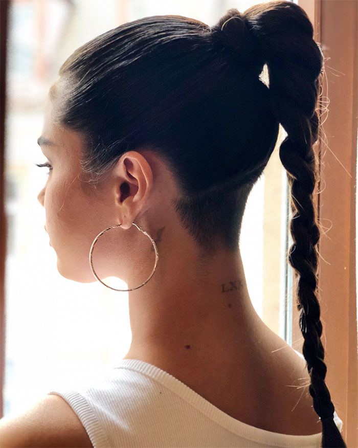 Dos siempre es mejor que uno... sobre todo si se trata de ser tan estilosa como la famosa. Si quieres un look moderno y original, entonces haz una coleta alta, deja un mechón suelto, sujétala con una liga y saca tu ingenio para crear la trenza más vanguardista o la más bohemia. Al finalizar, toma el pelo que dejaste sin amarrar y cubre el accesorio con el que sostuviste tu hairstyle.