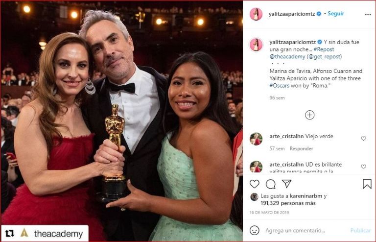 Aparicio ha comentado en diversas ocasiones que por actuar en la película de Alfonso Cuarón no percibió mucho dinero, pero eso cambió con su nominación a los premios Oscar, ya que se dice que la compañía de marketing Distinctive Assets regala a los nominados una bolsa con regalos.