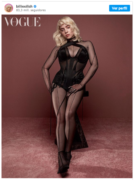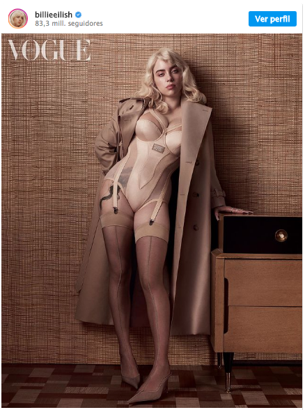 Así es, la cantante de "Bad Guy" por primera vez mostró más su cuerpo luego de enfundarse un corsé y retratarse como una modelo Pin-Up con el cabello totalmente rubio y así compartir su imagen en la portada de la revista British Voge en su edición de junio.