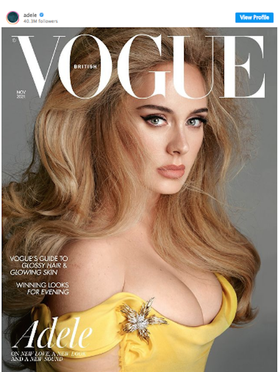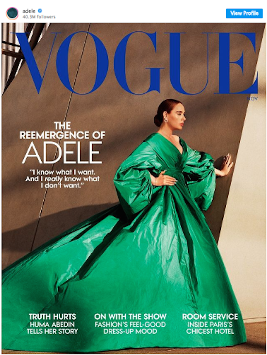 Adele impactó a todos sus fans, después de que se diera a conocer que es la portada de Vogue de noviembre, así lo anunció en su cuenta de Instagram.