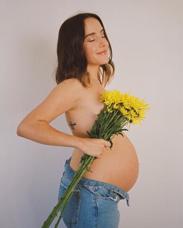 A través de su perfil de Instagram, la cantante compartió una serie de fotografías en las que se le puede ver posar de lo más sonriente con el torso desnudo, presumiendo orgullosa su pancita de más de siete meses de embarazo, mientras lleva un ramo de flores amarillas en las manos. Al pie del álbum de imágenes, la también actriz escribió un mensaje en el que ha pedido a sus fans sus opiniones sobre el sexo de su bebé, comenzando así con las predicciones de cara a la recta final de su embarazo: "Que empiece el debate… ¿niña o niño?”, escribió la artista de 24 años, quien se mostró ilusionada ante la cercana llegada de su bebé.