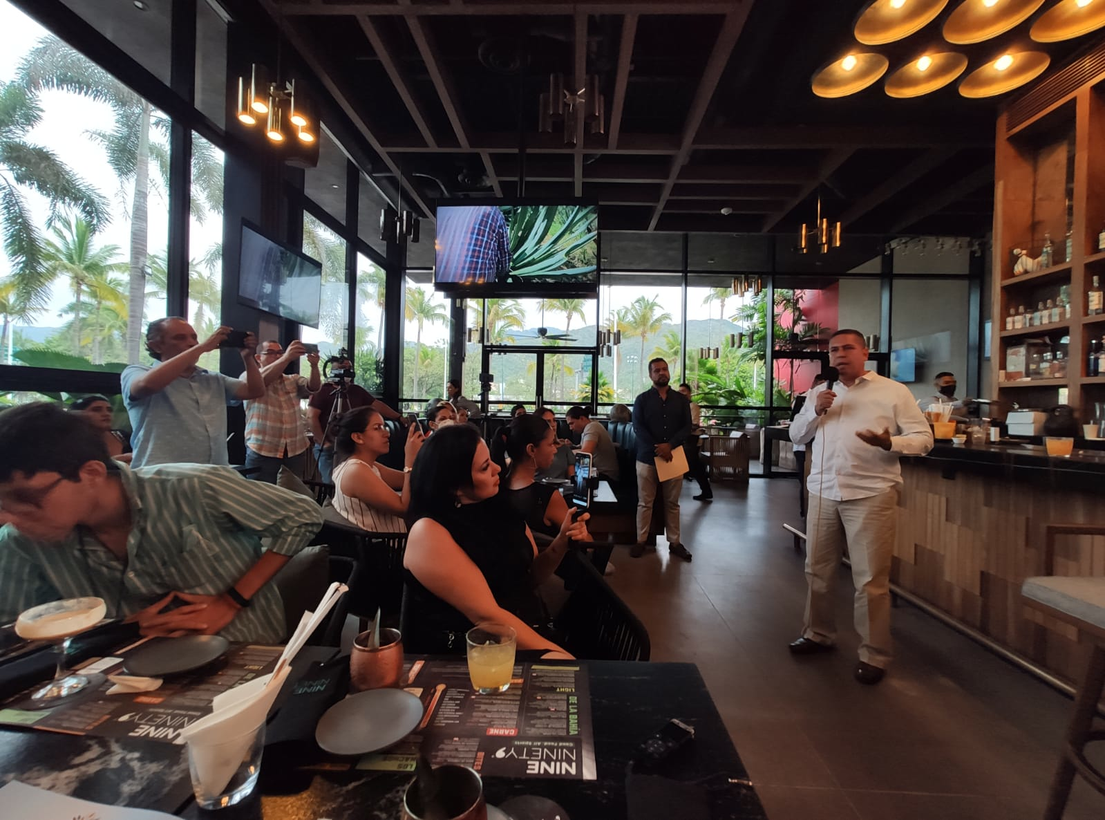 Reunidos en el bar Nine Ninety Nine del hotel Sheraton de Puerto Vallarta, los invitados degustaron del “Tesoro del Cuale”, el “Gallo de la Sierra”, “La Bufa” y “El Tubazo”, nombres que se les asignaron a los cocteles con raicilla que fueron elaborados.